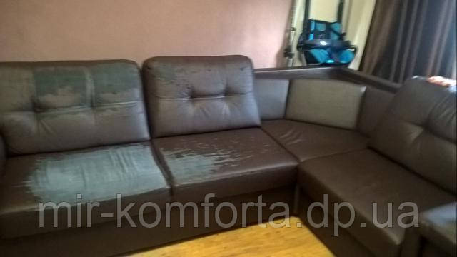 Зроблена заміна оббивальної старого пошарпаного шкірозамінника на шикарний велюр із нашої колекції меблевих тканин.